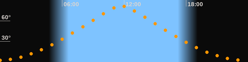 | Höchster Stand (Kulmination) | 11:43 Uhr (h = 81,3°) |