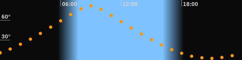 | Höchster Stand (Kulmination) | 08:56 Uhr (h = 81,3°) |