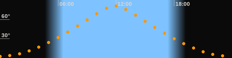 | Höchster Stand (Kulmination) | 11:53 Uhr (h = 81,3°) |