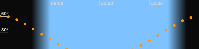 Höchster Stand (Kulmination)00:05 Uhr (h = 61°)