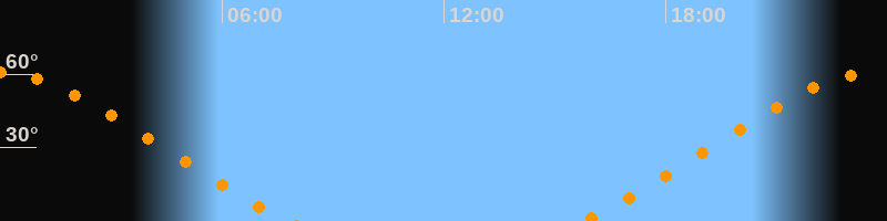 Höchster Stand (Kulmination)23:45 Uhr (h = 61°)