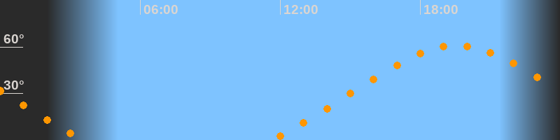 Höchster Stand (Kulmination)19:34 Uhr (h = 61°)