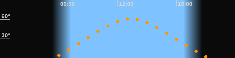 Höchster Stand (Kulmination)13:21 Uhr (h = 61°)