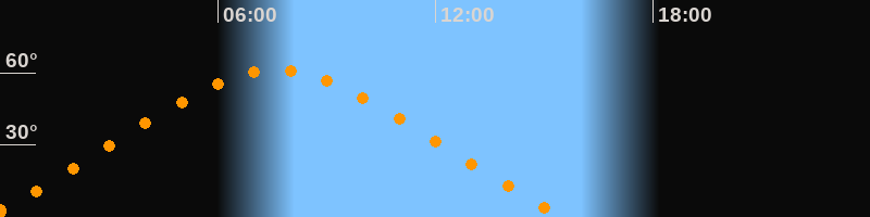 Höchster Stand (Kulmination)07:36 Uhr (h = 61°)