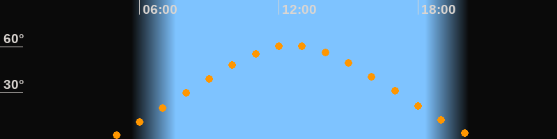 Höchster Stand (Kulmination)12:34 Uhr (h = 61°)