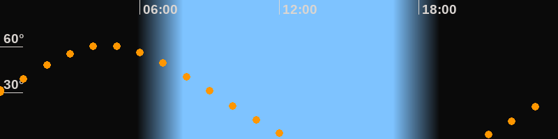 Höchster Stand (Kulmination)04:34 Uhr (h = 61°)