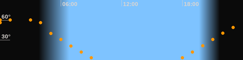 Höchster Stand (Kulmination)01:27 Uhr (h = 61°)