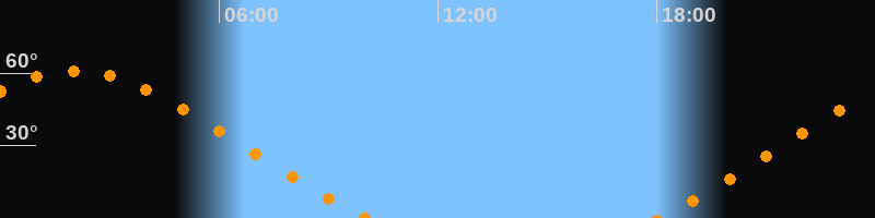 Höchster Stand (Kulmination)02:04 Uhr (h = 61°)