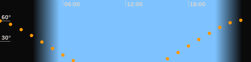 Höchster Stand (Kulmination)23:16 Uhr (h = 61°)