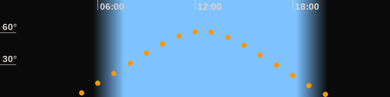 Höchster Stand (Kulmination)12:23 Uhr (h = 61°)