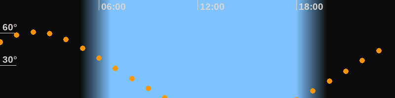 Höchster Stand (Kulmination)02:09 Uhr (h = 61°)
