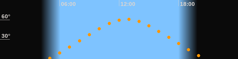 Höchster Stand (Kulmination)12:46 Uhr (h = 61°)
