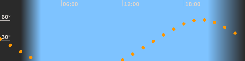 Höchster Stand (Kulmination)19:39 Uhr (h = 61°)