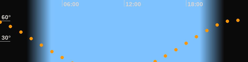 Aufgang14:50 Uhr im Nordosten (αAz = 53,4°)
