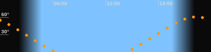 Aufgang14:18 Uhr im Nordosten (αAz = 53,4°)