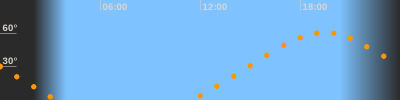 Höchster Stand (Kulmination)19:26 Uhr (h = 61°)