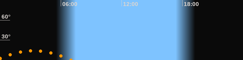 | Untergang | 07:02 Uhr im Südwesten (αAz = 228,5°) |
