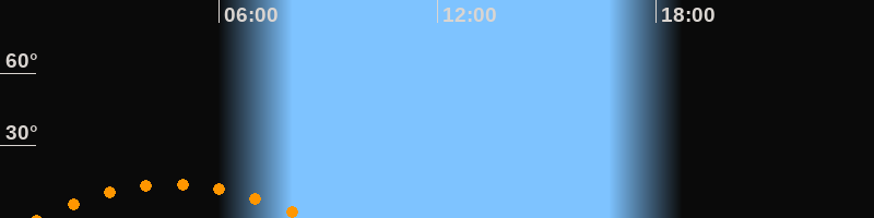 | Aufgang | 01:00 Uhr im Südosten (αAz = 131,5°) |