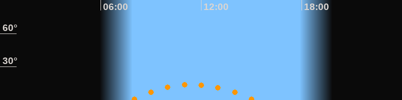 | Höchster Stand (Kulmination) | 11:29 Uhr (h = 14°) |