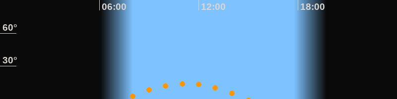 | Höchster Stand (Kulmination) | 11:13 Uhr (h = 14°) |