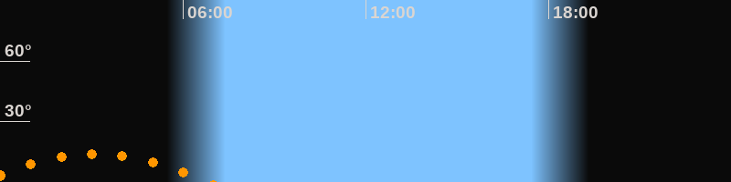 | Aufgang | 23:21 Uhr im Südosten (αAz = 131,5°) |