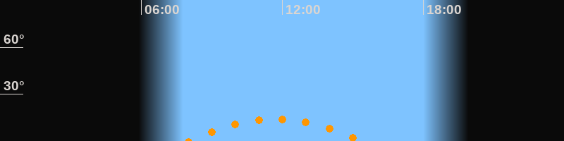 | Untergang | 15:26 Uhr im Südwesten (αAz = 228,5°) |