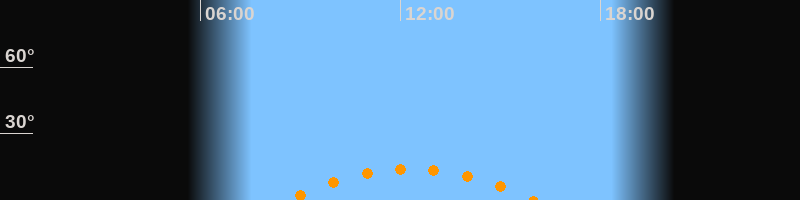 | Höchster Stand (Kulmination) | 12:19 Uhr (h = 14°) |