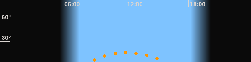 | Aufgang | 08:25 Uhr im Südosten (αAz = 131,5°) |