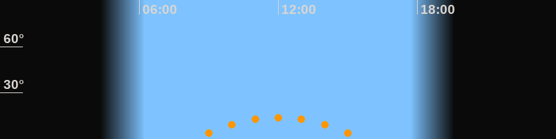 | Höchster Stand (Kulmination) | 12:00 Uhr (h = 14°) |