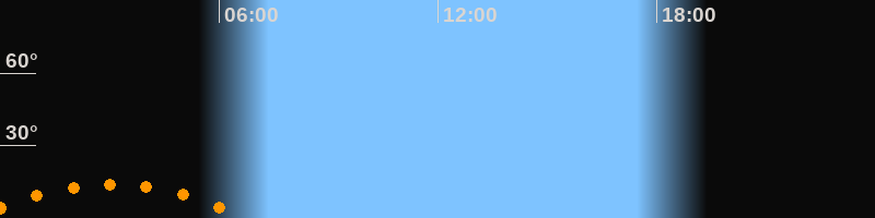 | Untergang | 06:46 Uhr im Südwesten (αAz = 228,5°) |