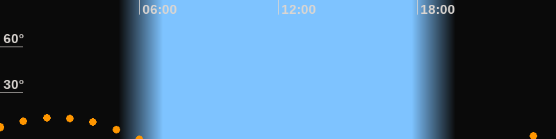 | Untergang | 06:06 Uhr im Südwesten (αAz = 228,5°) |