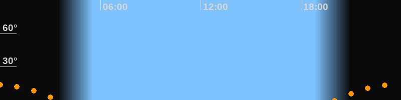 | Untergang | 03:29 Uhr im Südwesten (αAz = 228,5°) |