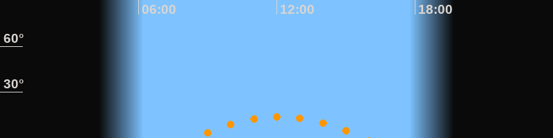 | Höchster Stand (Kulmination) | 12:06 Uhr (h = 14°) |