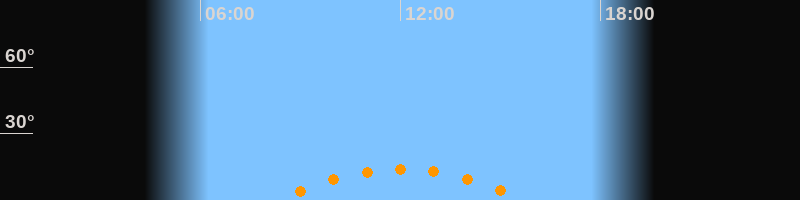 | Höchster Stand (Kulmination) | 12:02 Uhr (h = 14°) |