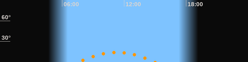 | Höchster Stand (Kulmination) | 11:16 Uhr (h = 14°) |