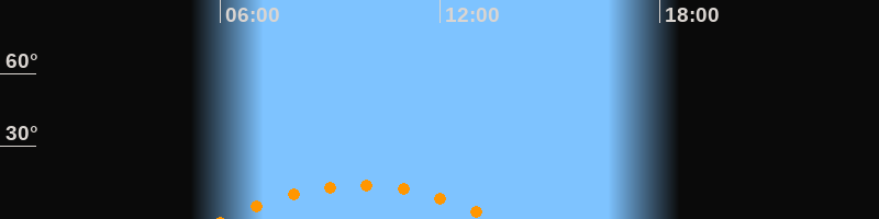 | Untergang | 13:32 Uhr im Südwesten (αAz = 228,5°) |