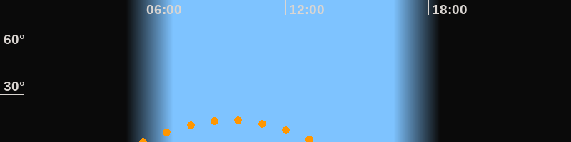 | Höchster Stand (Kulmination) | 09:37 Uhr (h = 14°) |