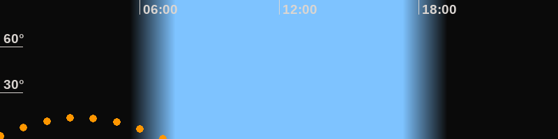 | Untergang | 07:07 Uhr im Südwesten (αAz = 228,5°) |