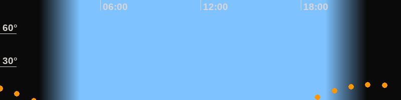 | Untergang | 02:00 Uhr im Südwesten (αAz = 228,5°) |
