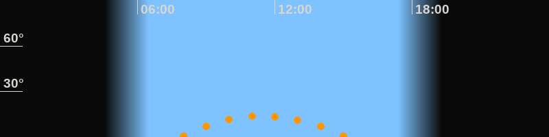 | Höchster Stand (Kulmination) | 11:28 Uhr (h = 14°) |