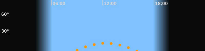 | Höchster Stand (Kulmination) | 12:21 Uhr (h = 14°) |