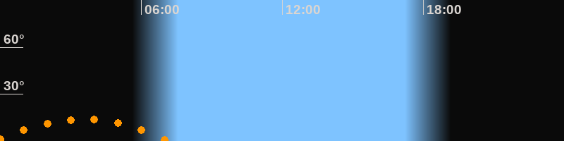 | Untergang | 07:14 Uhr im Südwesten (αAz = 228,5°) |