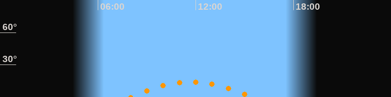 | Höchster Stand (Kulmination) | 11:43 Uhr (h = 14°) |