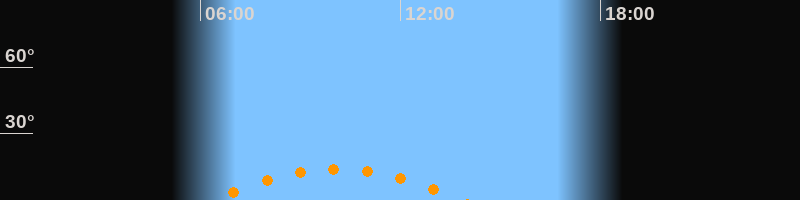 | Höchster Stand (Kulmination) | 10:05 Uhr (h = 14°) |