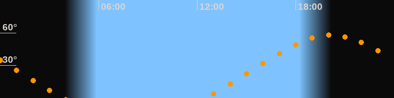 Höchster Stand (Kulmination)20:08 Uhr (h = 58,1°)