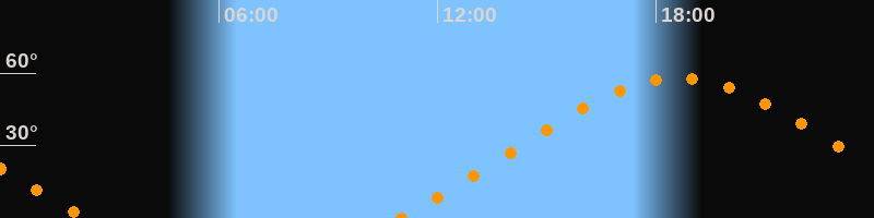 Höchster Stand (Kulmination)18:38 Uhr (h = 58,1°)