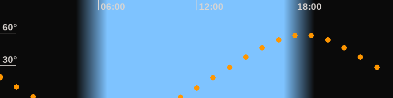 Höchster Stand (Kulmination)18:30 Uhr (h = 58,1°)