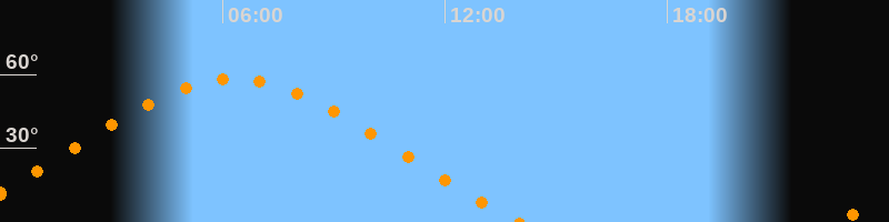 Höchster Stand (Kulmination)06:18 Uhr (h = 58,1°)