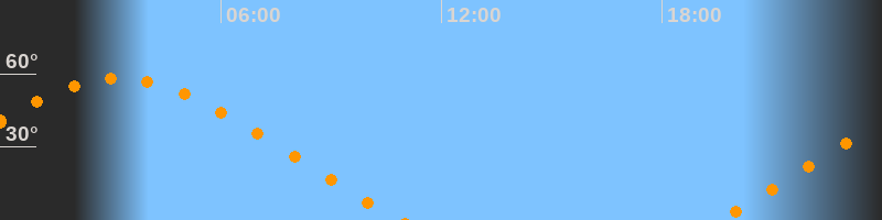 Aufgang19:29 Uhr im Nordosten (αAz = 58,6°)