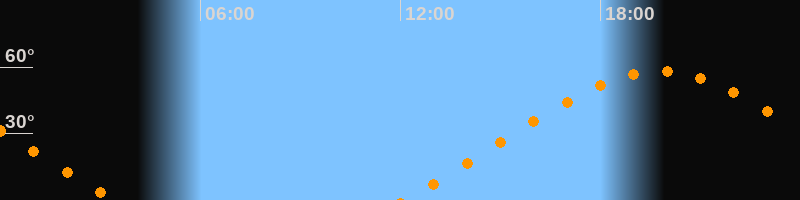 Höchster Stand (Kulmination)19:45 Uhr (h = 58,1°)